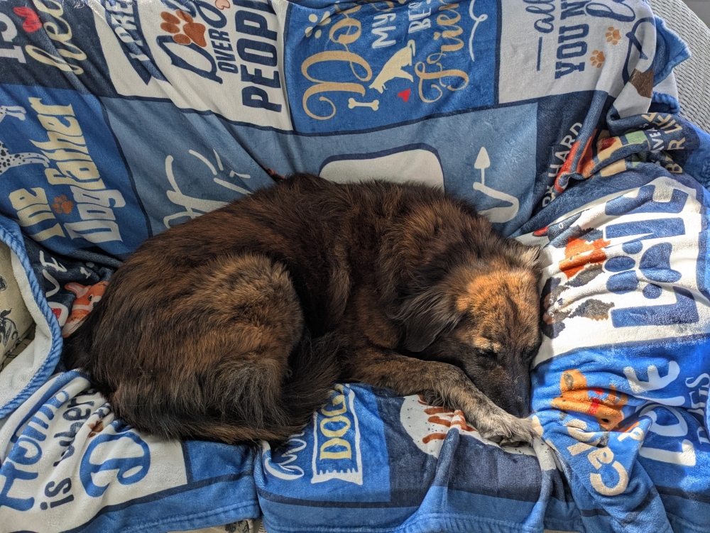 Maya is happy and comfortable enough.