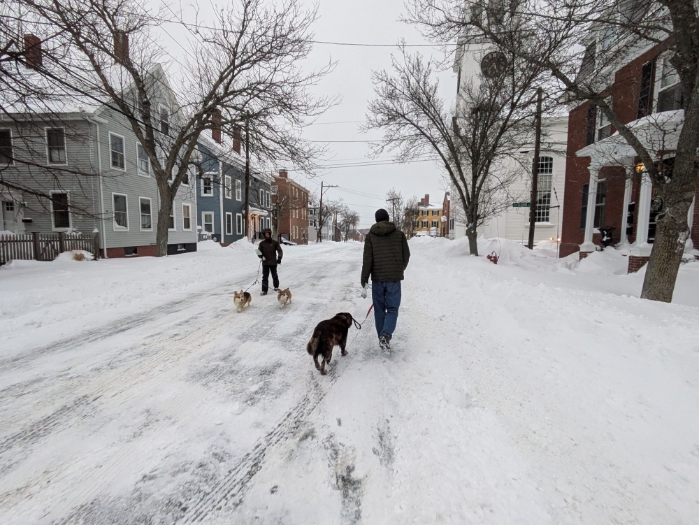 Dog walking is only possible on the plowed streets.