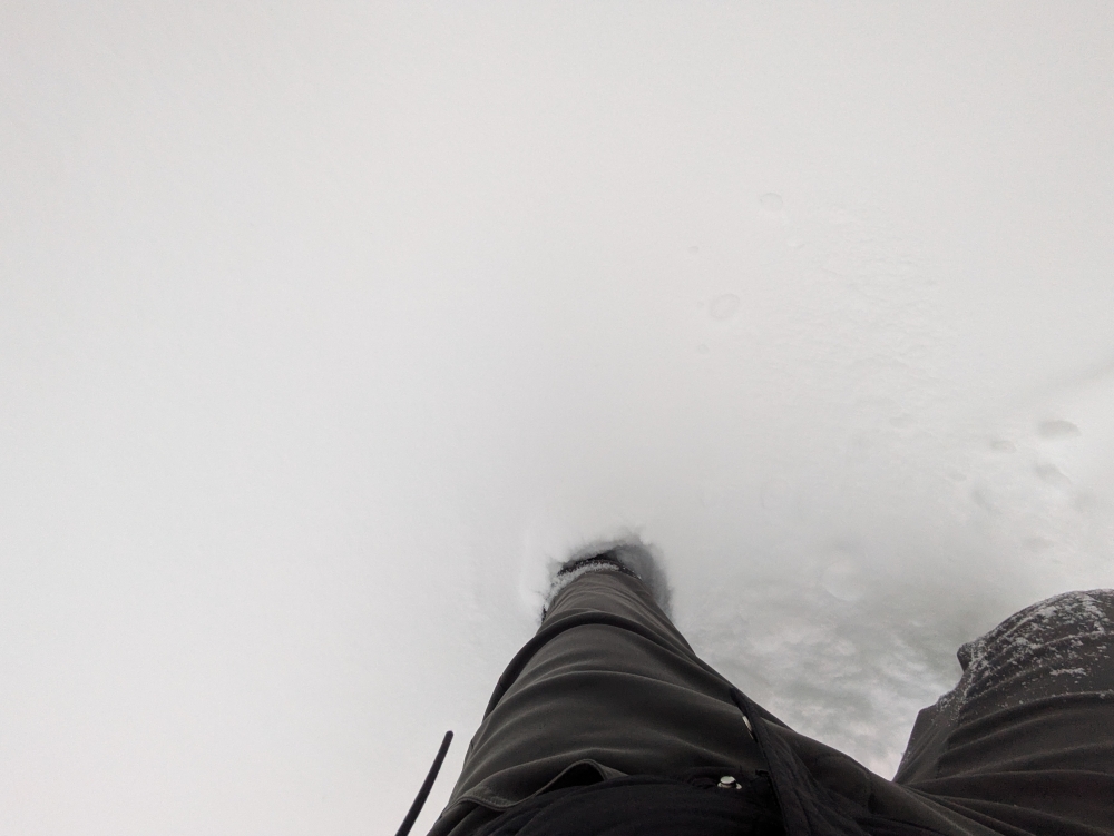 Knee-deep in the snow – My Antarctica pants (Jeff’s waterproof, fleece winter pants) are coming in handy!