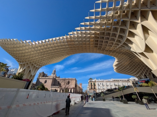Cool shot of Las Setas and an old church in the distance