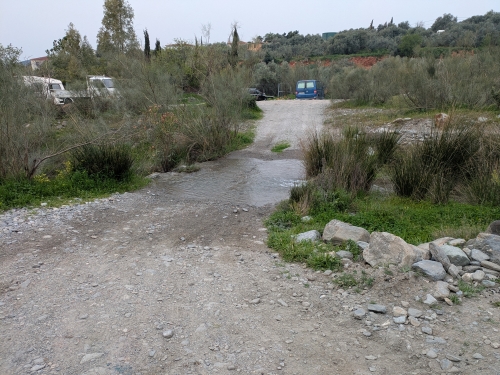 The driveway goes through a creek.