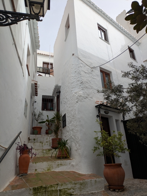All the houses are white and people love their plants.