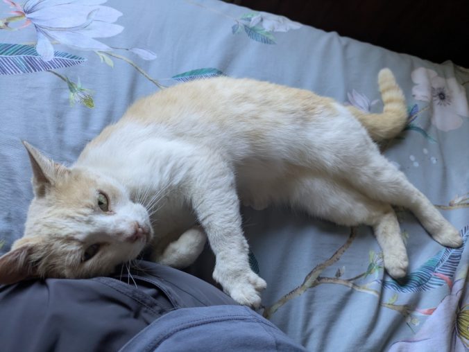 This cat managed to sneak into my room through an open window and jumped off the closet when I entered the room. Startling!
