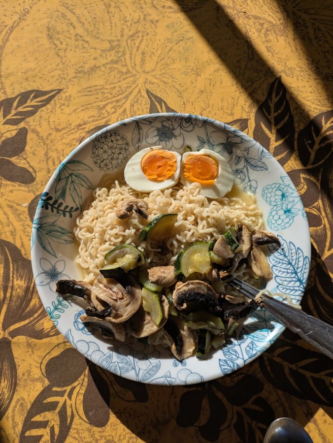 My first homecooked dinner at the hostel: a poor man’s ramen noodles