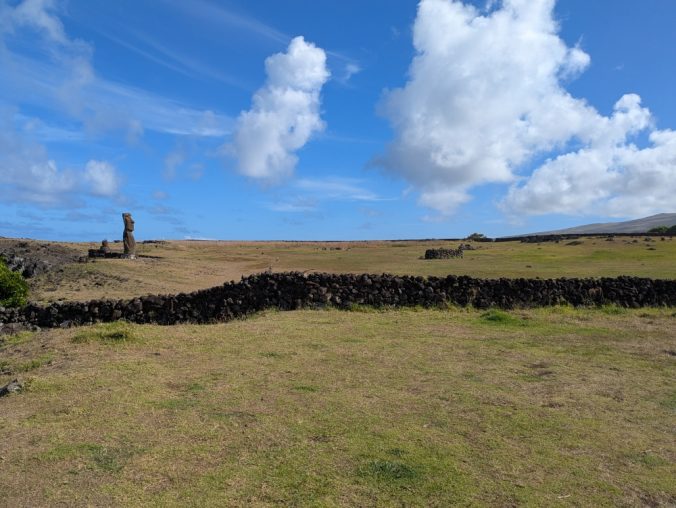 Walking along the coast towards another moai