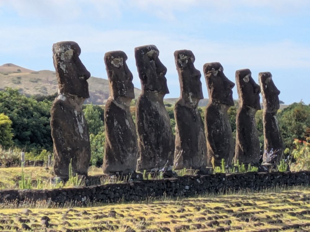Side view of the seven moai