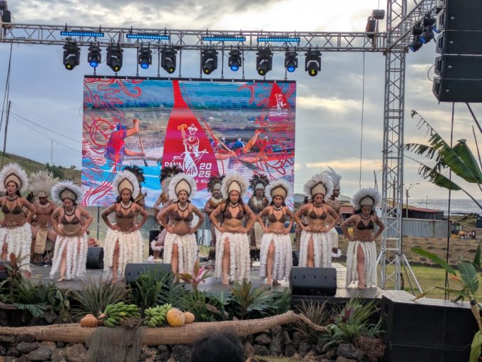 Front view of the stage and the dance group