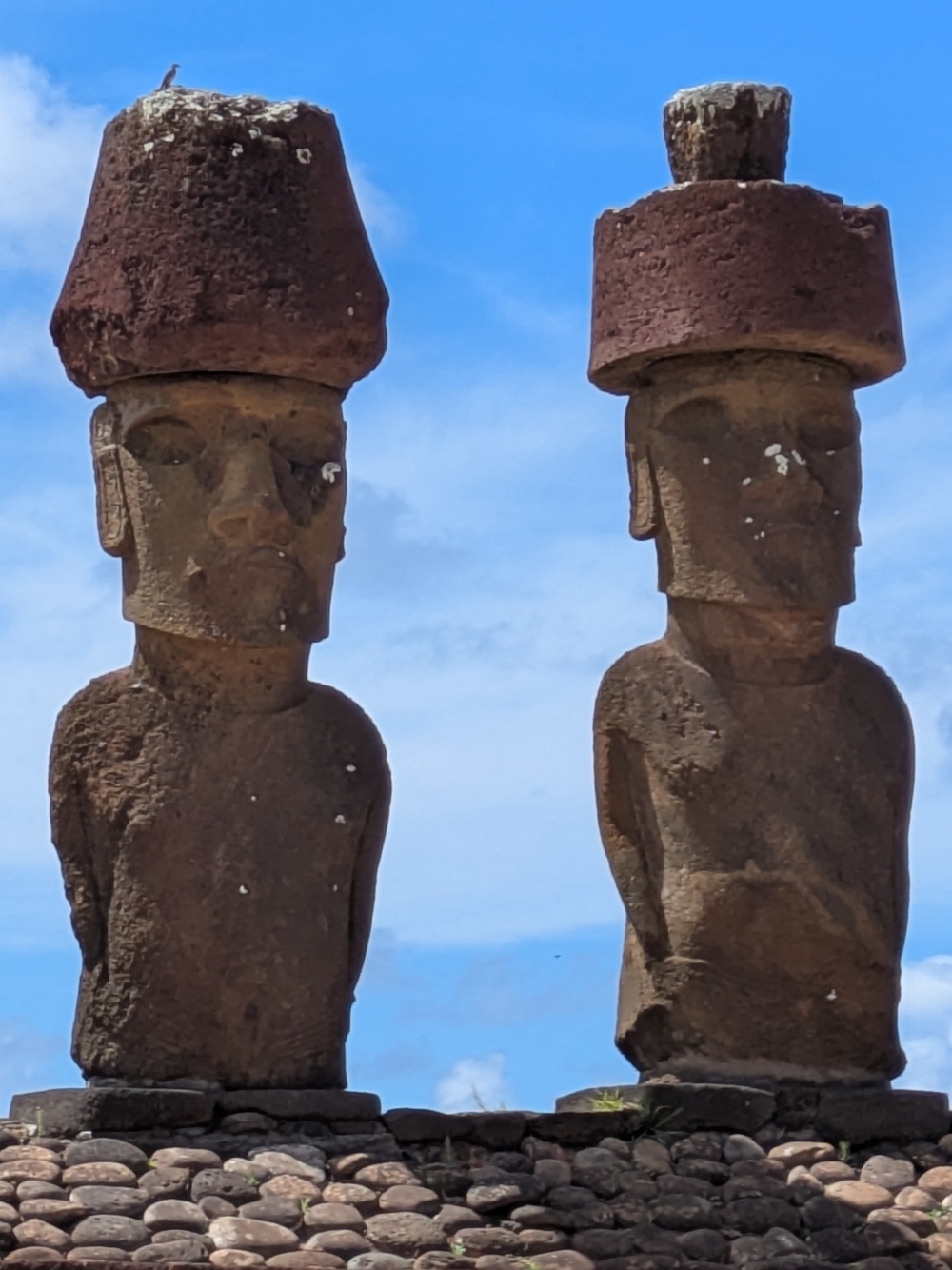 Close-ups of two moai on Ahu Nau Nau