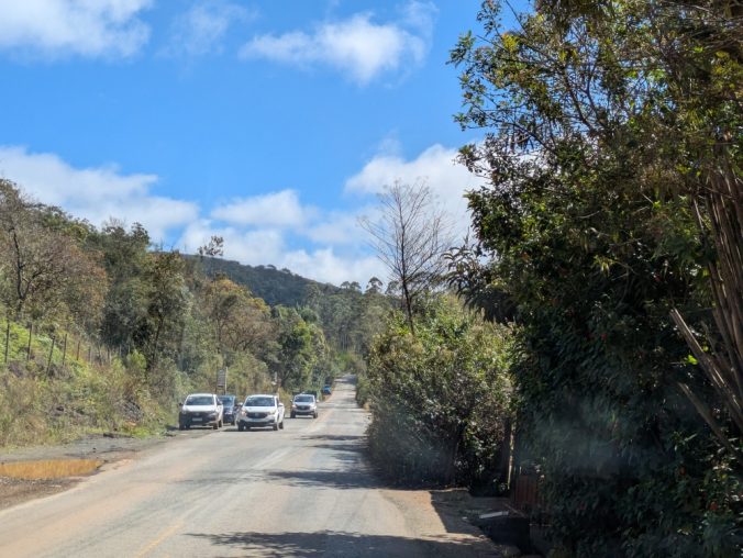 Overhanging brush – we can’t clear these areas and have to wait for oncoming traffic to pass first.