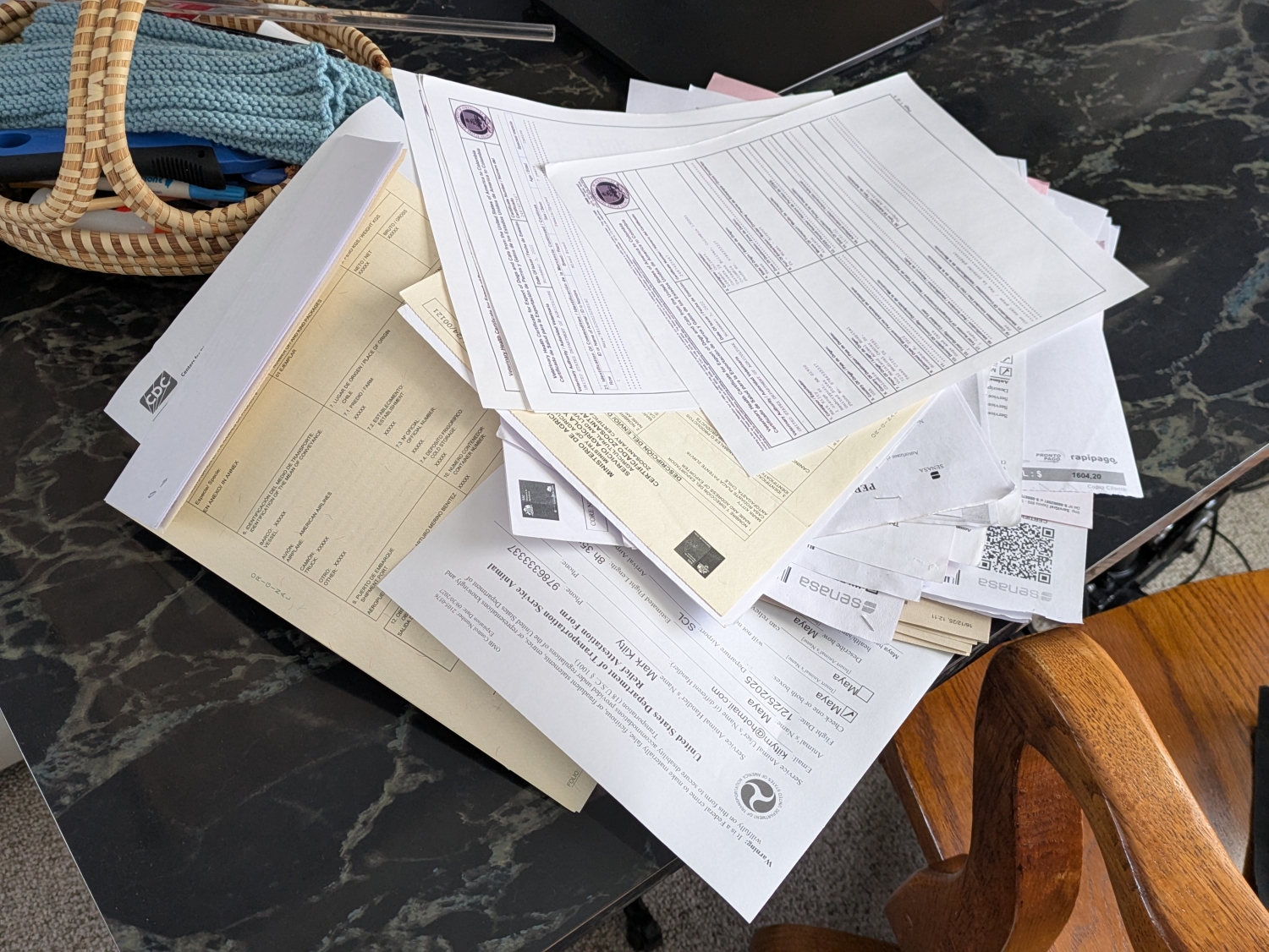 This is the pile of dog documentation after three years of traveling with Maya in South America.