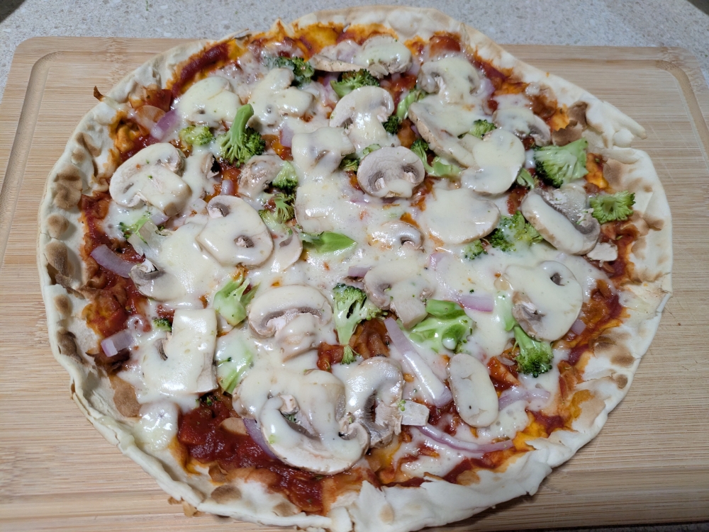 Homemade pan pizza on a store-bought crust