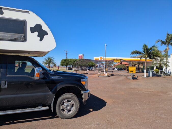 And, we needed to top up with fuel again, but this station only had low entry gates! We had to find anther fuel station.
