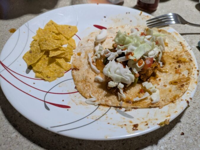 Chicken fajitas with corn chips – I was a bit late taking this photo…