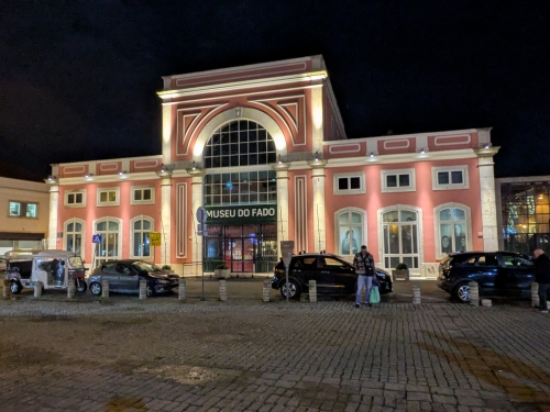 The Fado (local music style) museum lit up at night