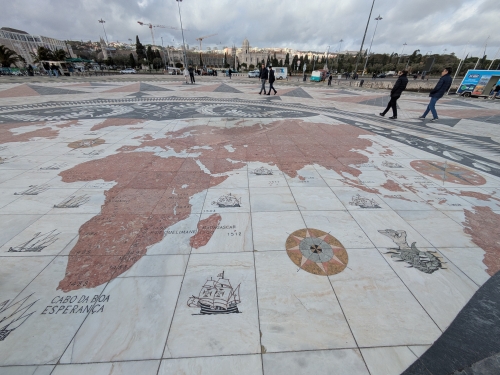 Tiled world map documenting the “discoveries” Portuguese explorers made