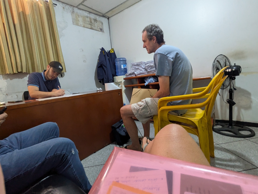 Getting our hand-written TIP (Temporary Import Permit) for the car at the border in Paraguay.