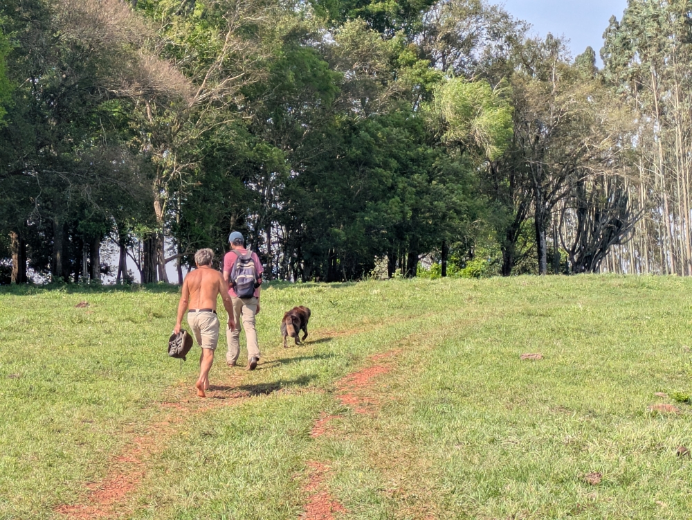Following trails on the property for an hour-long hike