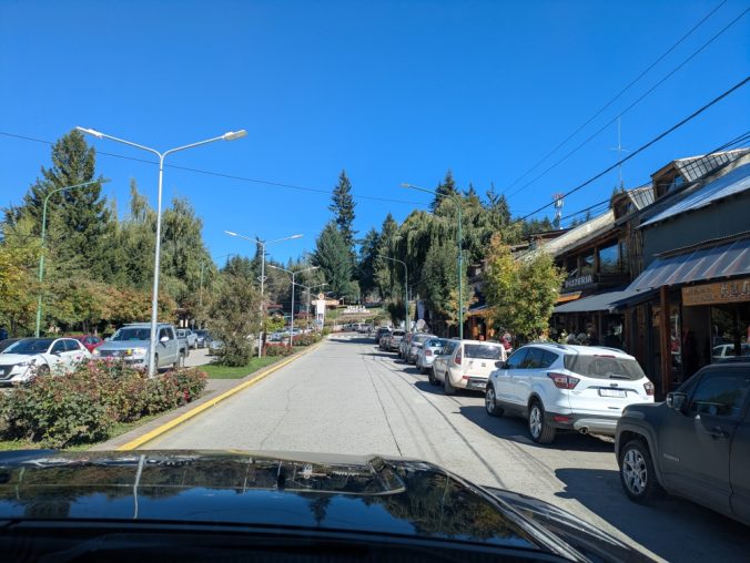 Driving through the touristy town of Villa La Angostura