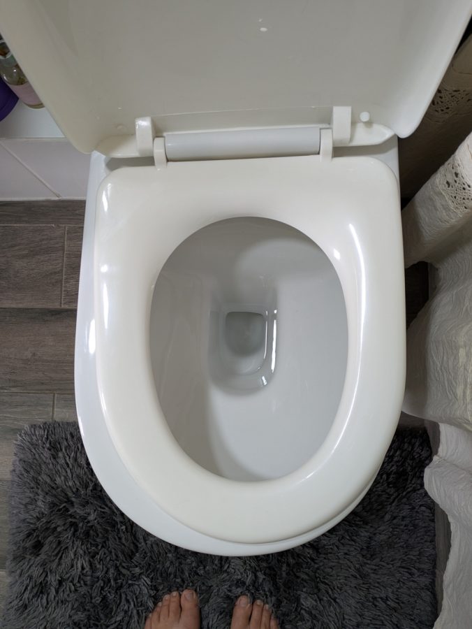 A seat that doesn’t fit and water well below the bowl area… What can go wrong?