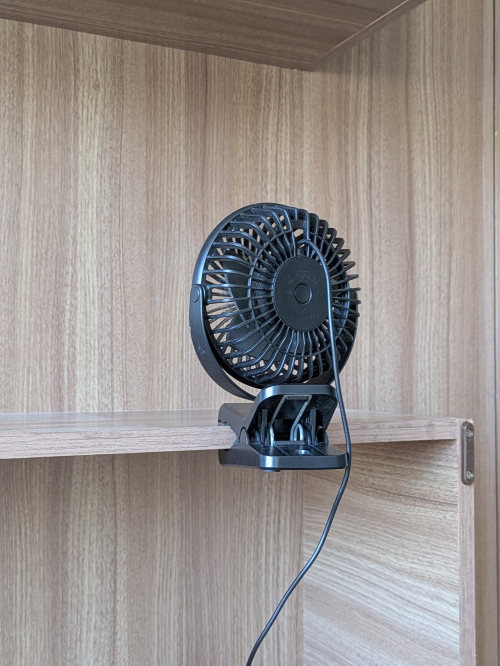 Our USB-fan vibrated against the wood of the cupboard, creating somewhat of a white noise