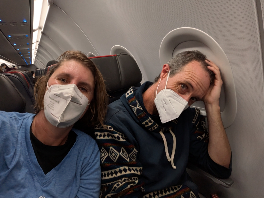 Flying north – We are the only ones wearing a mask on the plane.